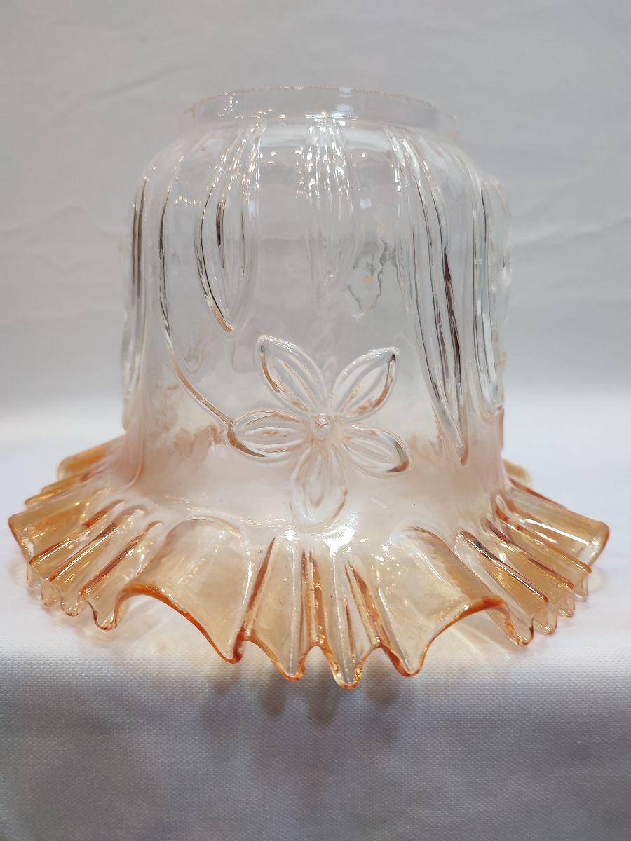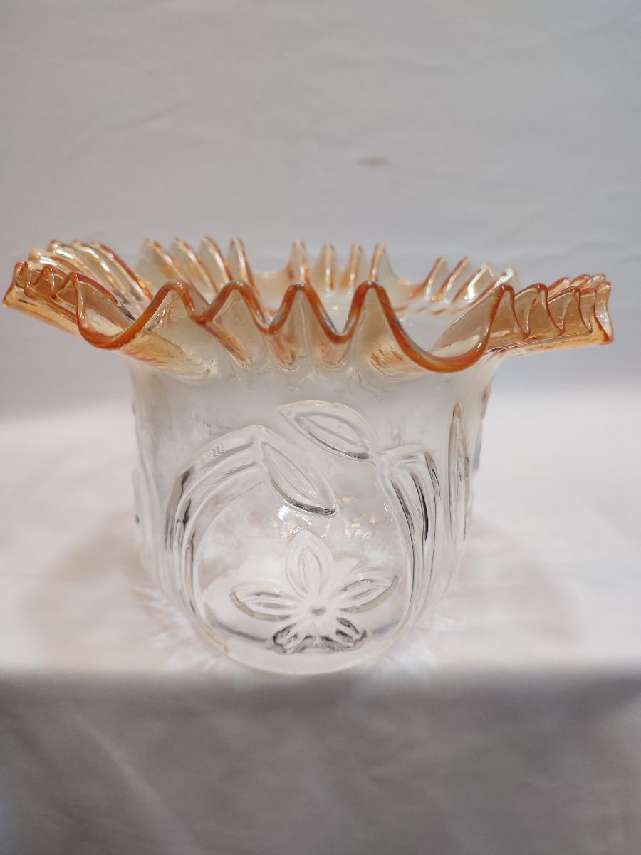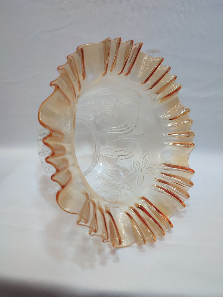 -Camın kıvırcık, açık ağız kısmı,transparan bal rengine boyanmıştır,camın alt yuva kısmı,şeffaf renktedir,renksizdir,camın kendi karakteristik rengidir.