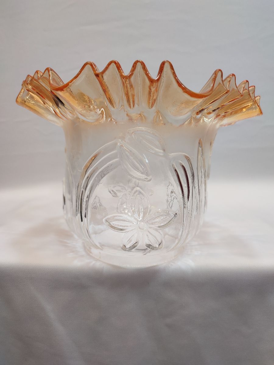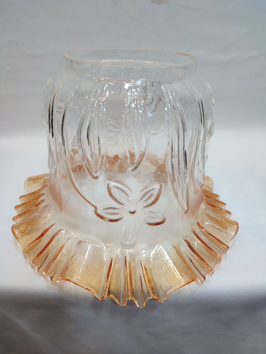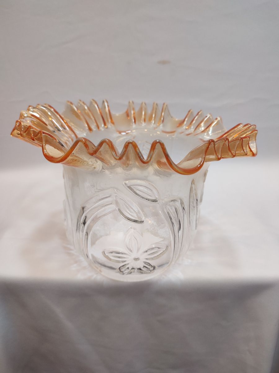-Camın kıvırcık, açık ağız kısmı,transparan bal rengine boyanmıştır,camın alt yuva kısmı,şeffaf renktedir,renksizdir,camın kendi karakteristik rengidir.